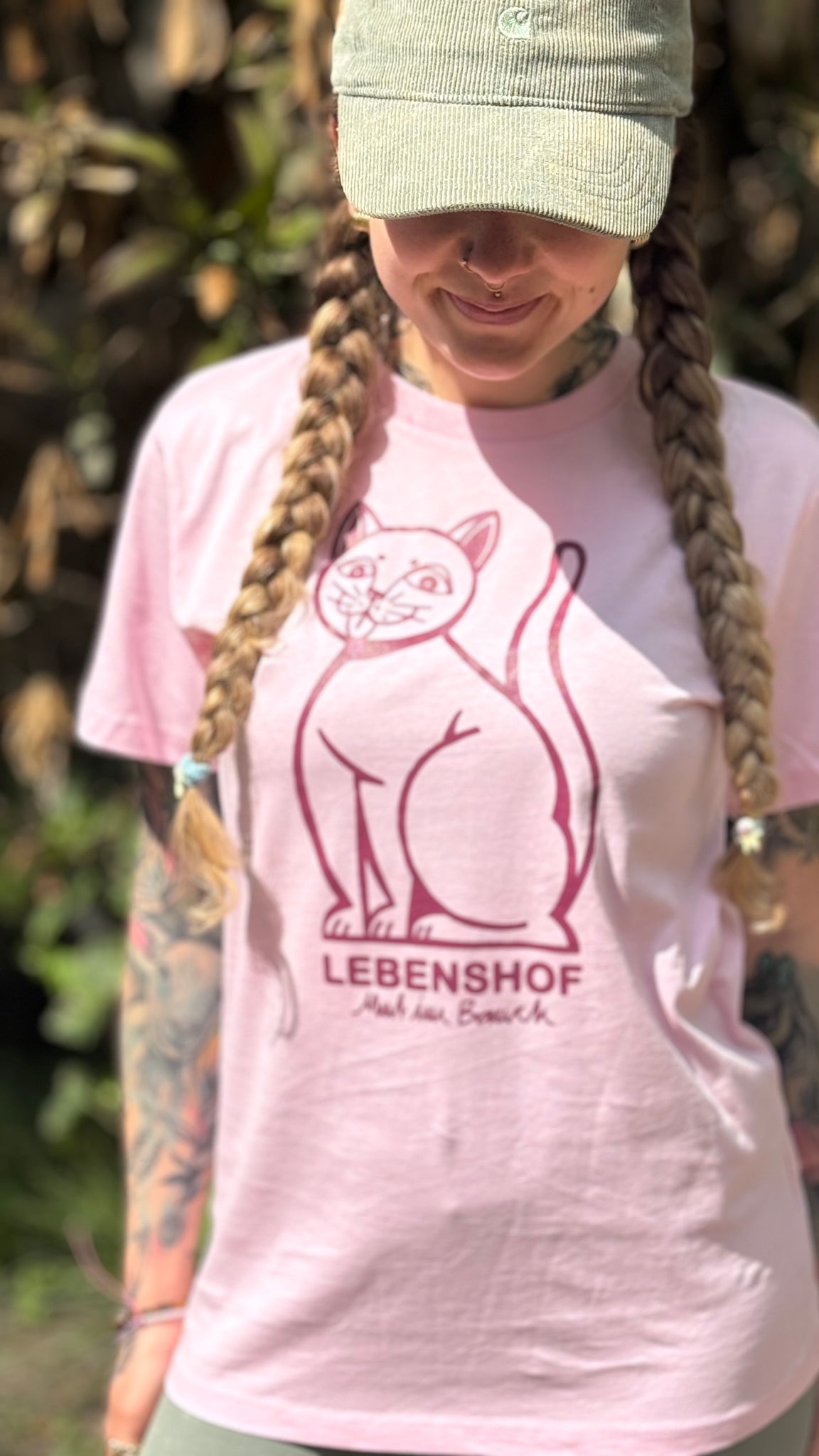 Unser Kids Shirt Katze zeigt eine der tierischen Bewohner:innen vom Lebenshof – mit sanftem Blick und starker Botschaft. Weich, fair und tobtauglich – genau wie’s sein soll.